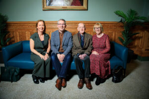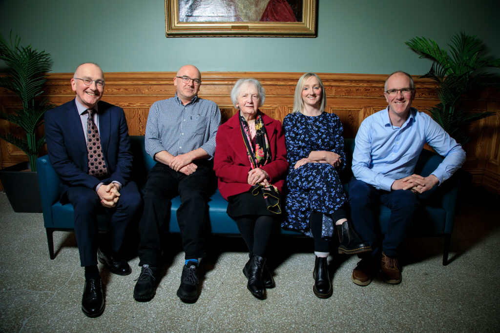 Deirdre McCusker, her father John McCusker, St Mary’s University College Principal Prof. Peter Finn,