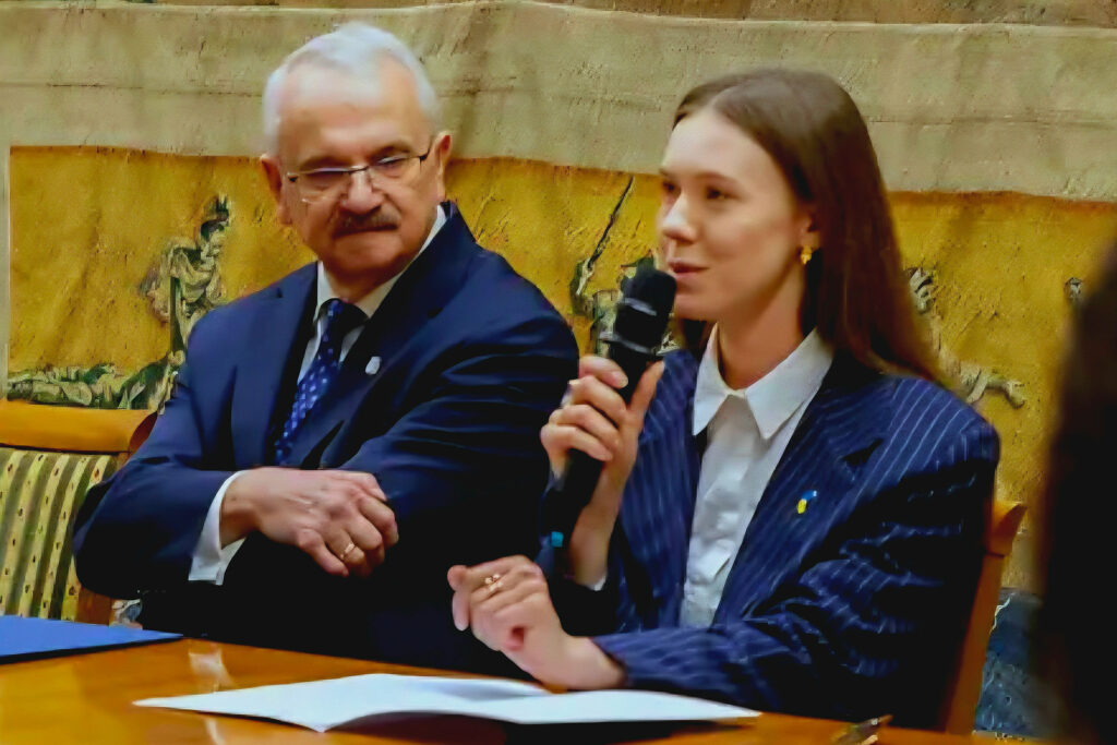 Pictures: the signing ceremony, lead by Professor Valentyna Ushchyna (EDUWAP); Professor Jarosław Górniak (Vice-Rector for International Cooperation, Jagiellonian University) and Velentyna Kuzmin (Vice-Consul General of Ukraine to Kraków); and VNU post-graduate students Nataliia Sachkovska and Victoriia Mazurchuk