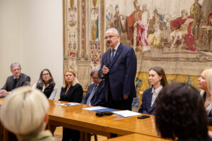 Together with five university partners from Ukraine, Poland and the USA, the College has entered into a consortium agreement to formally establish the ‘Education Development in Ukraine – in War and Peace’ (EDUWAP) project. The project aims to assist educational professionals and institutions in Ukraine in areas such as conflict related child trauma, psychosocial support for teachers and students, research on resilience and recovery, virtual lectures, and veteran reintegration back into the education system. The project’s operational hub is based in Lesya Ukrainka University, Lutsk, Ukraine (www.vnu.edu.au.uk) . Velentyna Kuzmin, Vice-Consul General of Ukraine to Kraków (pictured), complemented the College on its long-standing working relationship with Ukrainian universities. For further information contact Professor Gerard McCann g.mccann@stmarys-belfast.ac.uk
