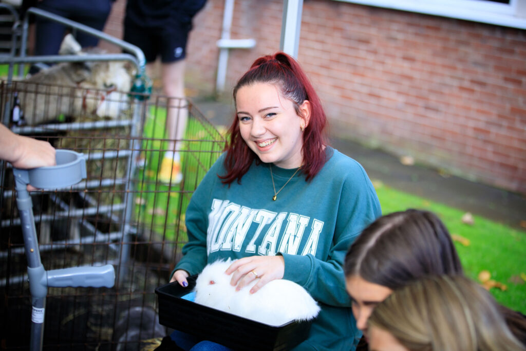As part of a week of activities and events to help our students with their mental health organised by the Students’ Union, a variety of furry, feathered and even scaly animals visited the St Mary’s campus for a day.